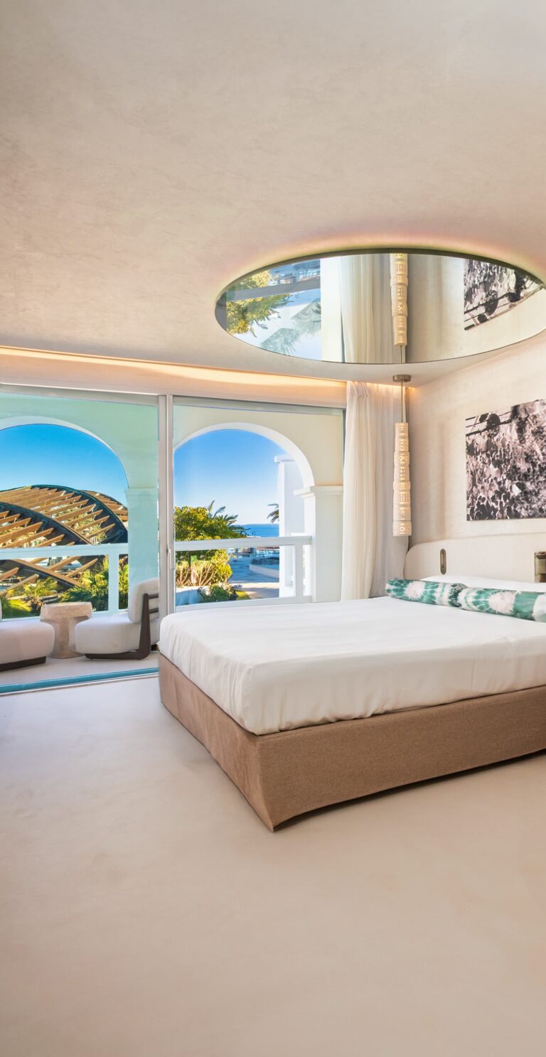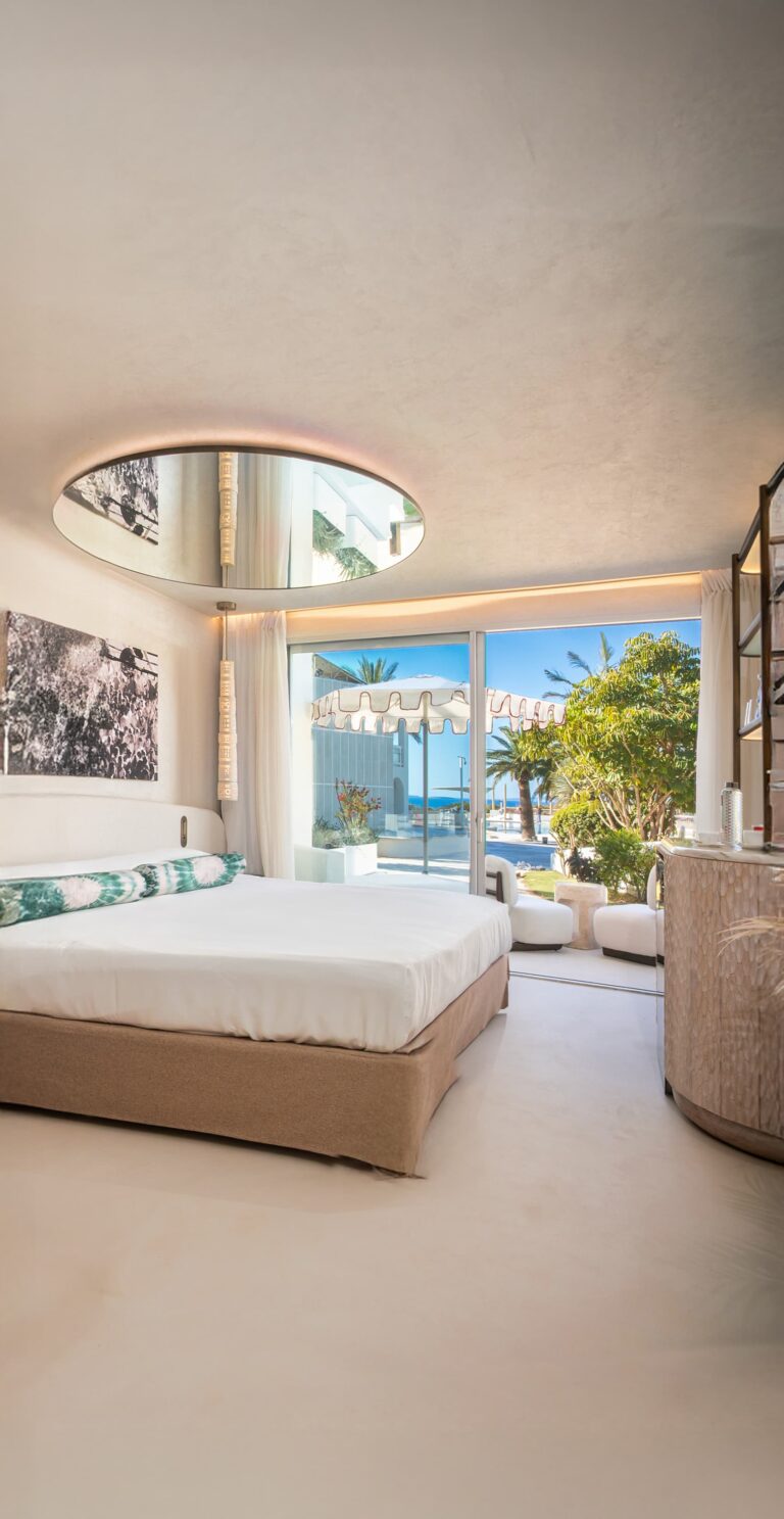 Boasting prime views of the iconic cherry-shaped Playa Pacha Pool, the Epic Suite combines modern sophistication with island-inspired charm, offering a boho-chic retreat close to Ibiza’s vibrant poolside scene.