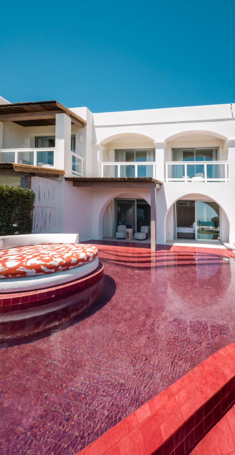 The Cherry Suite with XL Pool is your ultimate retreat for embracing Ibizaβs free-spirited outdoor vibes. Boasting our most lavish private garden, this suite offers ample space to entertain, relax, and play. The expansive outdoor area features a stunning pool surrounded by lush greenery, creating the perfect setting for hosting friends or simply soaking in the islandβs energy. Inside, the suite combines bold artwork, vibrant accents, and serene design elements, crafting a tranquil space that mirrors the effortless elegance of Ibiza. Ideal for those who crave both indulgence and connection, this suite is where outdoor freedom meets sophisticated living.