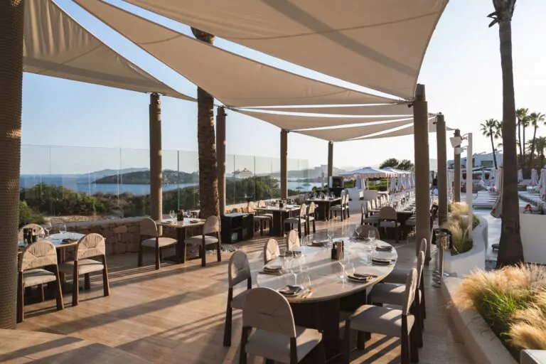 Discover the allure of Ibiza’s iconic cherry-shaped pool! Immerse yourself in the rhythm of our live DJ, surrounded by breathtaking views of the sea and Dalt Vila whilst you lounge on one of our deluxe sunbeds, sway leisurely in a hammock, or take a dip in the jacuzzi.